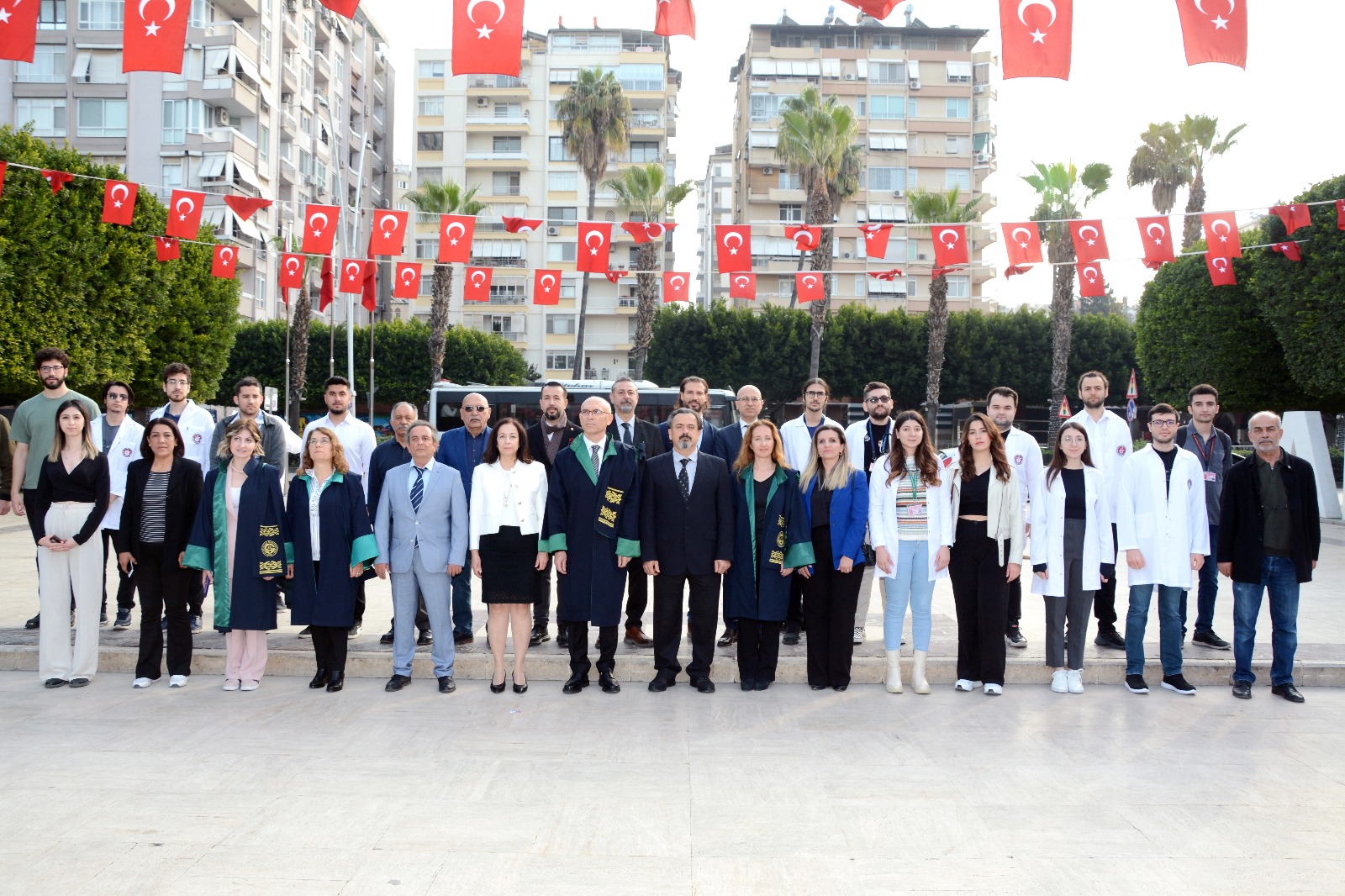 14 Mart Tıp Bayramı vesilesiyle Atatürk Parkı’nda Atatürk Anıtı’na çelenk koyma töreni yapıldı. Törene Adana Tabip Odası Başkanımız Dr. Ahmet Suntur ve Yönetim Kurulu Üyelerimiz, Çukurova Üniversitesi Tıp Fakültesi Görevlileri, tıp öğrencileri ve doktorlar katıldı.