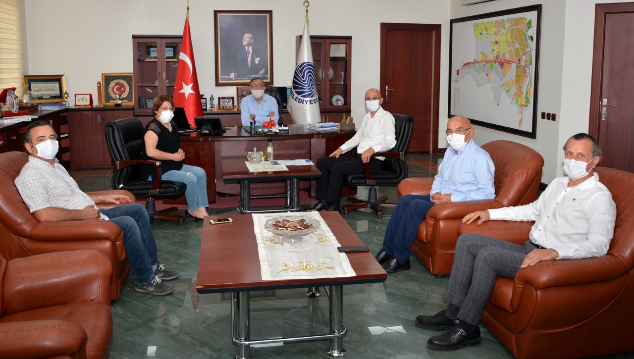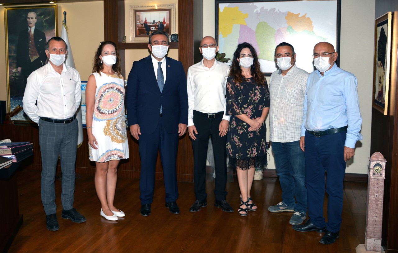 Adana Tabip Odası Genel Sekreteri Dr. Ahmet Suntur, Sayman Dr. Figen Demir Kardeş, Veznedar Dr. Sedat Gül, Yönetim Kurulu üyeleri Dr. Nalan Kükürt, Dr. Figen Doğan Güneş ve Dr. Halit Atik ile birlikte Seyhan Belediye Başkanı Akif Kemal Akay ve Çukurova Belediye Başkanı Soner Çetin’e nezaket ziyaretinde bulunan Başkan Uzm. Dr. Selahattin Menteş, “Biz pandemi döneminde yönetime seçildik. Sizlere bir ‘merhaba’ demek istedik. Hastalarından kovid-19 virüsü kapıp, vefat eden hekim sayımız 40’ı buldu. Kurtuluş Savaşı’nda bile bu kadar şehit vermedik. Şuan pozitif çıkmış hekim arkadaşlarımız evlerinde karantinadalar. Biz pandemi sürecinin seferberlik gibi algılanmasını istiyoruz. Sadece hekim ve sağlık çalışanının işi değildir. Herkesin görevidir. Her birey, her kurum uyarı beklemeden kendi tedbirlerini mutlaka almalıdır. Pandemi sürecinde belediyelerin üzerlerine düşen görevi fazlasıyla yerine getirdiğini gördük. Bu anlamda sizlere teşekkür ederiz. Pandemi sürecinde hekime şiddet ve şikayet biraz azaldı ama bitmedi. Şiddet yasasının çıkması da etkiledi. Bu yasanın çıkması yetmez, ilgili mercilerce uygulanması lazım.” dedi.
