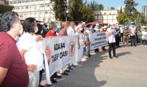 Sağlık ve Sosyal Hizmet Emekçileri Sendikası (SES)’in düzenlediği TTB Türk Tabipleri Birliği (TTB) Merkez Konsey Başkanı Dr. Şebnem Korur Fincancı ve MK Üyeleri ile Adana Tabip Odasının destek verdiği açıklamaya hekim ve sağlık çalışanları katıldı.