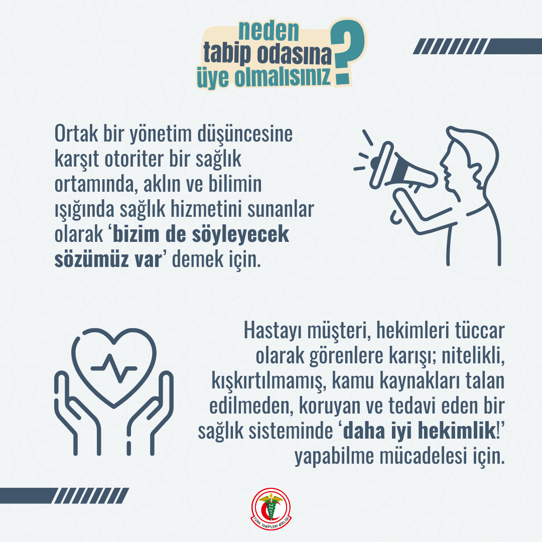 Hekimlerin/sağlık emekçilerinin haklarını alabildiği, toplum sağlığının korunması ve geliştirilmesini önceleyen bir sağlık sistemini hep birlikte inşa edene dek hekimlik değerleri, meslektaşlarımızın hakları ve toplum sağlığı için mücadelemizi büyüterek sürdüreceğiz.” diye konuştu.