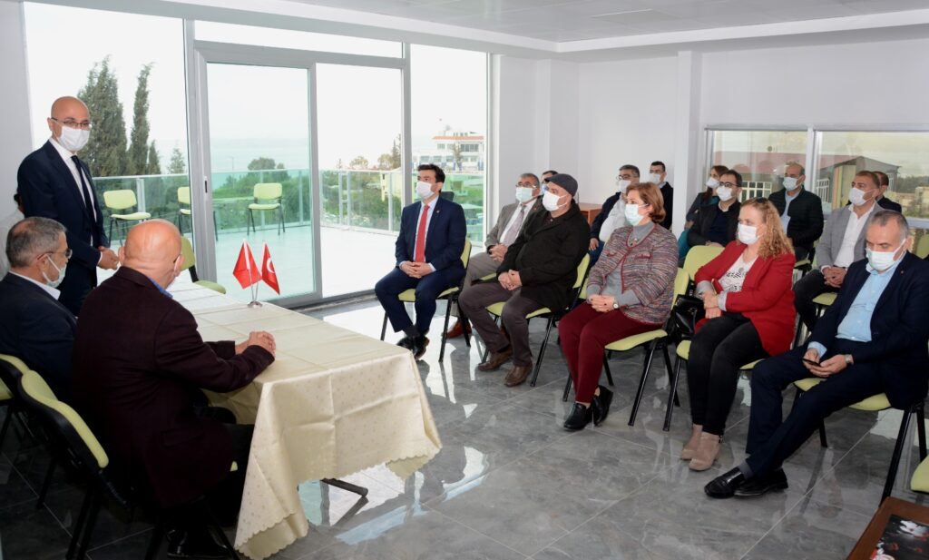 Karalar ve Çelebiye verdikleri destek için Tabip Odası ve hekimler adına teşekkür eden Adana Tabip Odası Başkanı Uzm. Dr. Selahattin Menteş, “Sizleri odamızda ağırlamak bizler için şereftir. Malum pandemi döneminden geçiyoruz. Beklenmeyen normalleşme içerisindeyiz. Dün itibariyle sayısı 15 bine yaklaşan yeni hasta var. Maalesef iktidar bilgileri enfermasyona göre yürütüyor. Ülkemizde en fazla İngiliz Mutasyonu görülmektedir. Neredeyse bütün illerimizde bu mutasyon görülmeye başladı. Mutasyonların bulaşıcılığı daha yüksektir. 14 Şubatta başlayan aşılanmada ancak 10 milyon doz aşılayabildik. Aşılanma çok ağır ilerliyor. Toplumun yüzde 60-70’i biran önce aşılanmaz ise hepimizi kara günler bekliyor demektir. Umudumuz halkımızın daha çok dikkatli olmasıdır. Adana ve Türkiye’deki tek amacımız aşık olduğumuz maviyi haritada da görmek. Onun için biz hekim ve sağlık çalışanları canla başla çalışıyoruz. Sizleri de bu mücadelede her zaman yanımızda görüyoruz. Şahsım ve Yönetim Kurulum adına hepinize çok teşekkür ediyorum.” dedi.