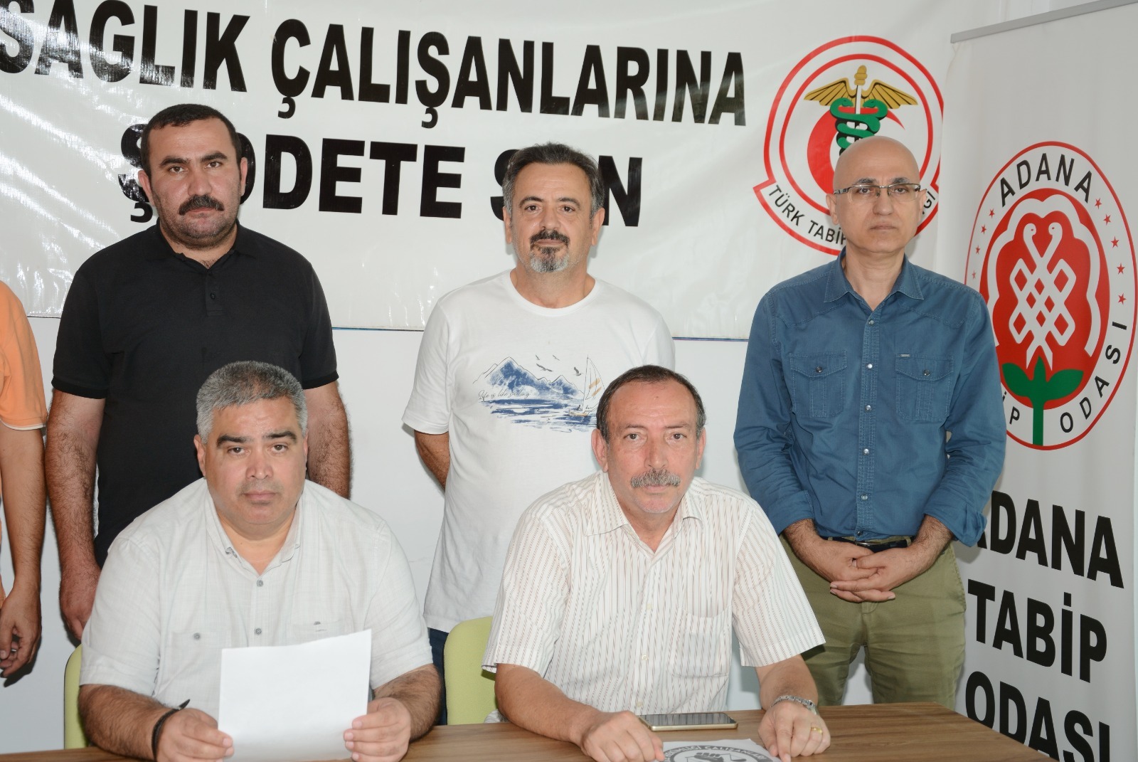 Adana Tabip Odası ile SES Yönetici ve üyelerinin hazır bulunduğu eylemde kurumlar adına açıklamayı Adana Tabip Odası Başkanı Uzm. Dr. Özden Polatöz yaptı.